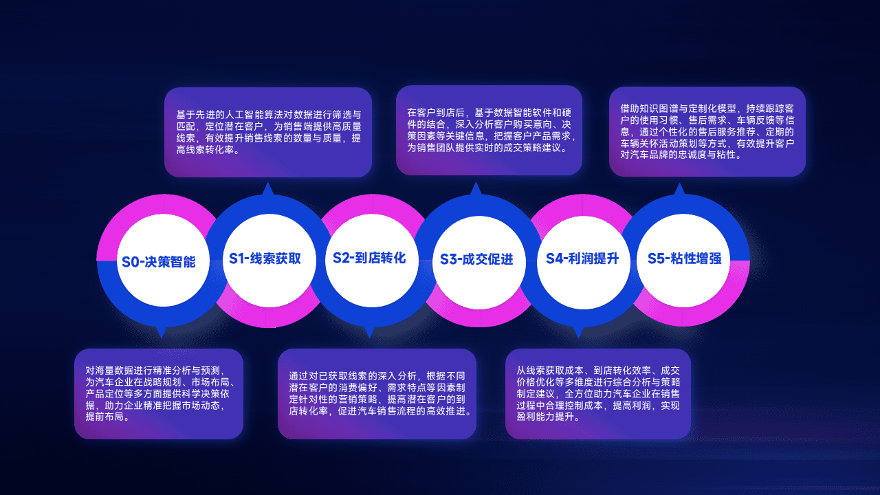 通过拓宽潜在客户来源、、、、优化线索分配并提高到店转化率,,,以增强销售效率。。。同时,,,,利用线索数据不断优化分析模型,,有效提升转化率,,扩大营销影响力。。